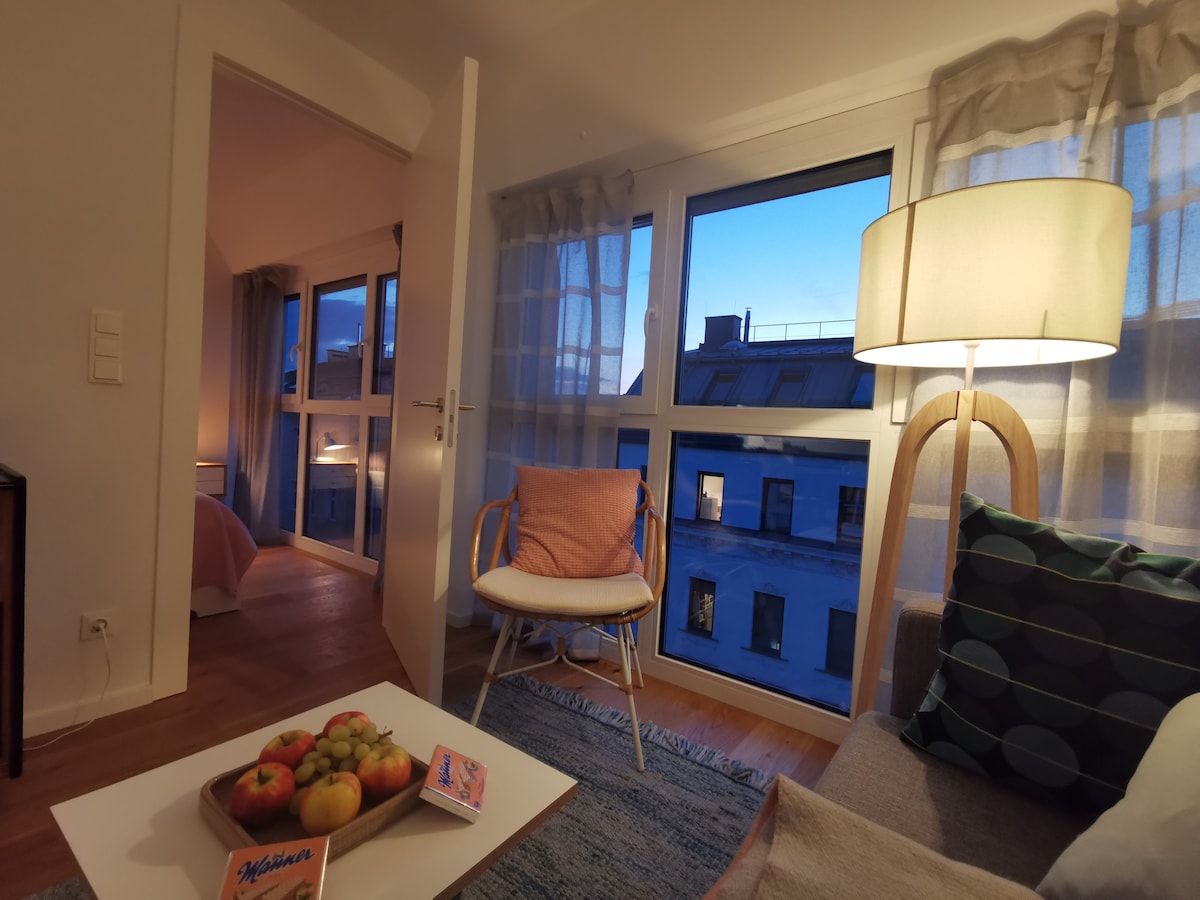 Descubre la vida urbana en su máxima expresión en nuestro departamento recientemente renovado y muy céntrico de 40 m². Ubicado en el segundo piso de un edificio histórico, este exclusivo espacio cuenta con una amplia sala de estar, una habitación cómoda, un baño con inodoro y una cocina bien equipada. Las comodidades adicionales incluyen un sofá cama, un televisor, una WLAN, una lavadora y una cocina completa. Todas tus necesidades diarias, tiendas, cafeterías y restaurantes a la vuelta de la esquina. Sumérgete en el arte, cultura, compras y lugares de interés a pocos pasos.