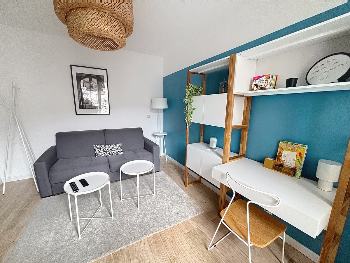Descubre este refugio familiar situado en el corazón de Val d'Europe, a solo 5 minutos en automóvil o 20 minutos a pie de Disneyland París 🏰 y a 5 minutos a pie del centro comercial VAL D'EUROPE 🛍️. Perfecto para una estancia mágica ✨ en pareja o en familia (hasta 4 personas), el apartamento está totalmente equipado y situado en una residencia popular y segura. Tiene reservada una plaza de aparcamiento gratuita y segura. ¡Te esperan comodidad, practicidad y encanto!