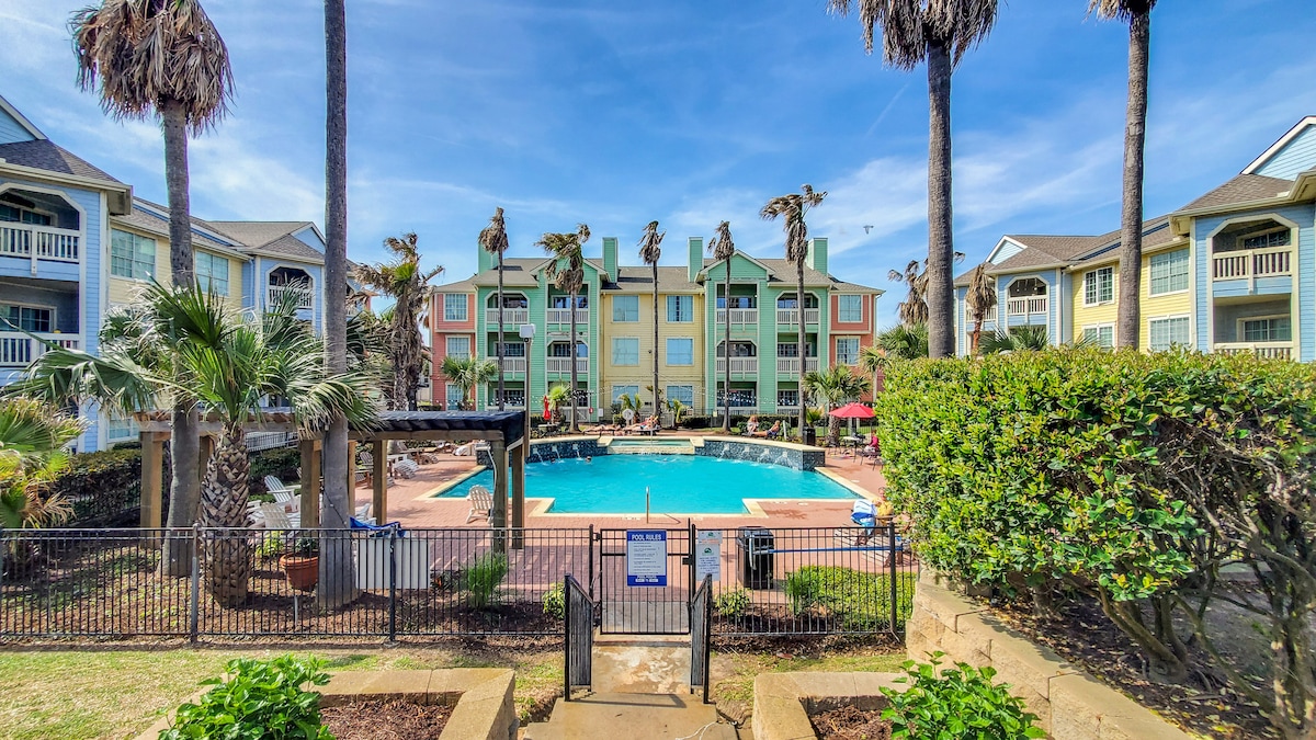 ¡Fantástico apartamento estudio en la planta superior a solo UNA manzana de la playa! Disfruta de restaurantes, bares y atracciones a poca distancia a pie y disfruta de todo lo que ofrece Galveston. Cama tamaño queen para 2 personas, cocina totalmente equipada, baño completo, con sábanas y toallas incluidas. Plaza de aparcamiento gratuita asignada en el hotel, wifi gratuito y TV equipada con capacidad de streaming. ¡La ubicación perfecta para disfrutar de tu escapada a la isla!