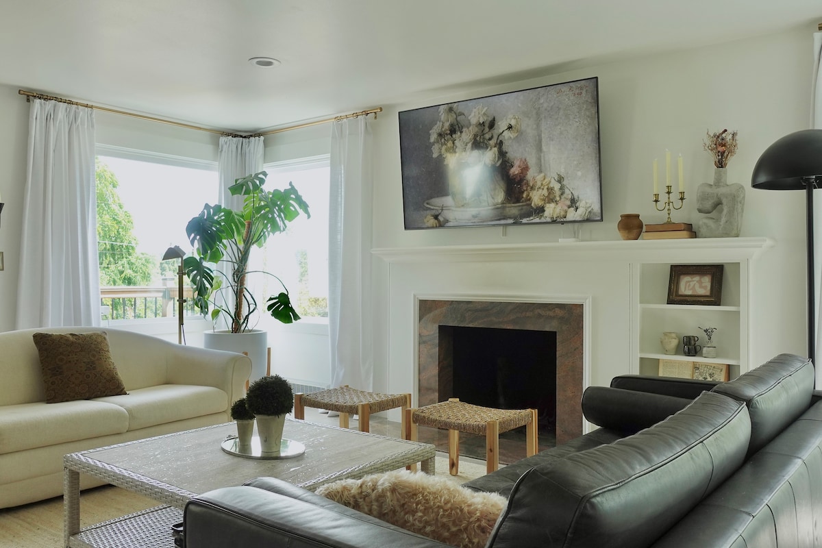 Convenientemente ubicado a 5 minutos del estadio T-Mobile Park y Lumen Field. Copa del Mundo, Serie Mundial. Ubicación en el oeste de Seattle, en el barrio de North Admiral, con increíbles vistas del horizonte de Seattle, una suite privada de un dormitorio con chimenea y cama supletoria y vistas increíbles de la ciudad, una lujosa ducha de hidromasaje, a 11 minutos de Pike Place, a 2 minutos a pie del icónico parque mirador de Seattle, cafetera Kuerig y espresso, cocina moderna completa, microondas, nevera, ropa de cama prémium y cama tamaño king de espuma viscoelástica, Direct TV,