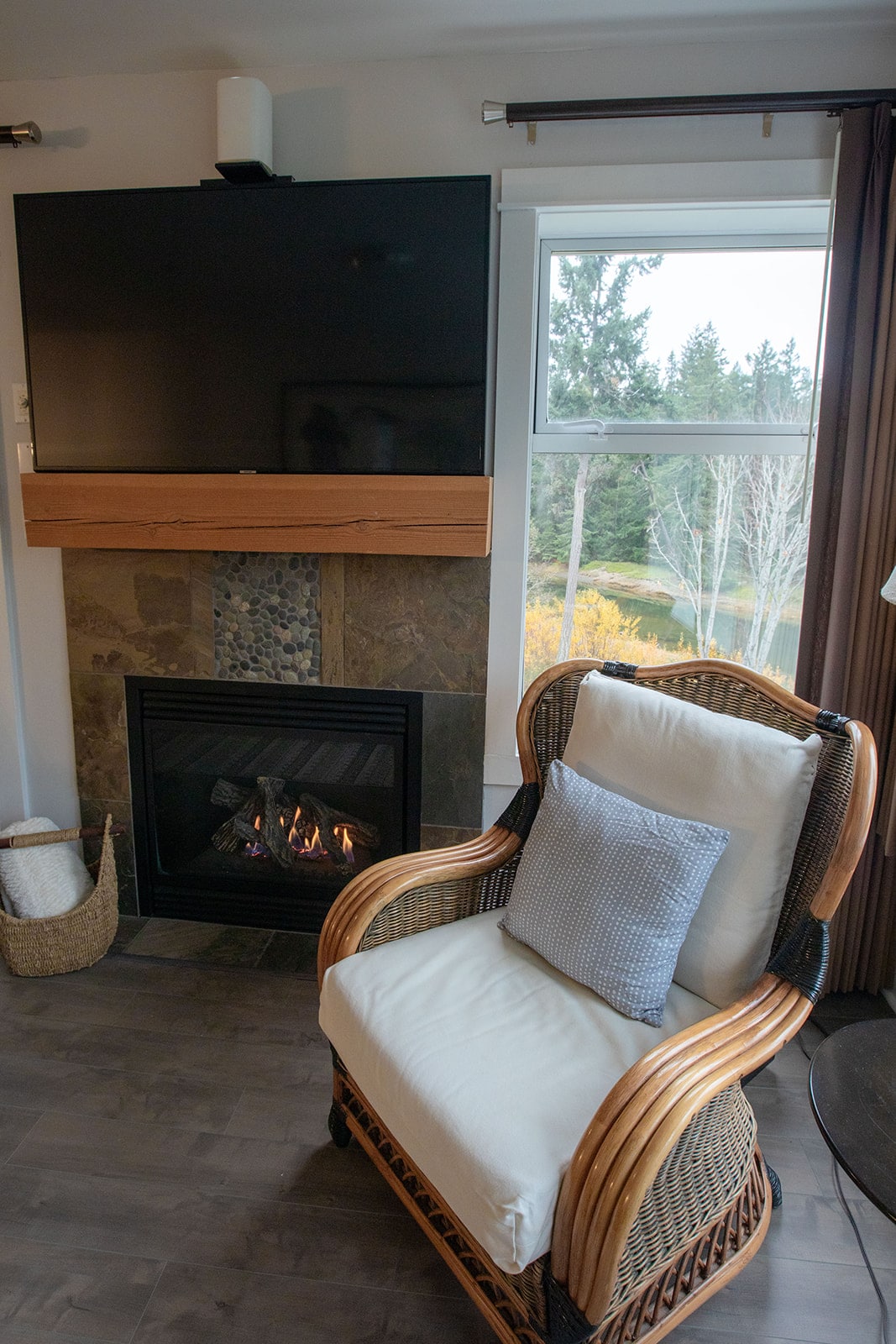 Disfruta de la vida isleña en esta unidad de estudio con cama tamaño queen, sala de estar con chimenea, cocina pequeña ligera (mininevera, microondas y café) y una silla plegable individual (el sofá no se pliega hasta convertirse en una cama). La naturaleza observa tu propio balcón mientras las mareas fluyen sobre la playa de Rathtrevor y los pájaros y ciervos explora el arroyo, ¡y camina hasta la playa a la que se accede directamente desde la propiedad!