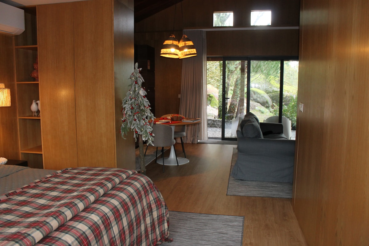 Amonde Village ***** Relájate en plena naturaleza, Ven a disfrutar de la naturaleza, con la máxima calidad y confort. A 15 minutos de Viana do Castelo, 35 minutos. de Oporto y 40min. de Vigo (ES). Insertado en un entorno familiar y acogedor, con ubicaciones únicas. Acceso gratuito a la Piscina y al Gimnasio. El Jacuzzi - es de uso exclusivo, por cada 2 noches de reserva tienes derecho a 2 horas de uso, por cada casa, durante la estancia, previa reserva y disponibilidad. Disfrútalo