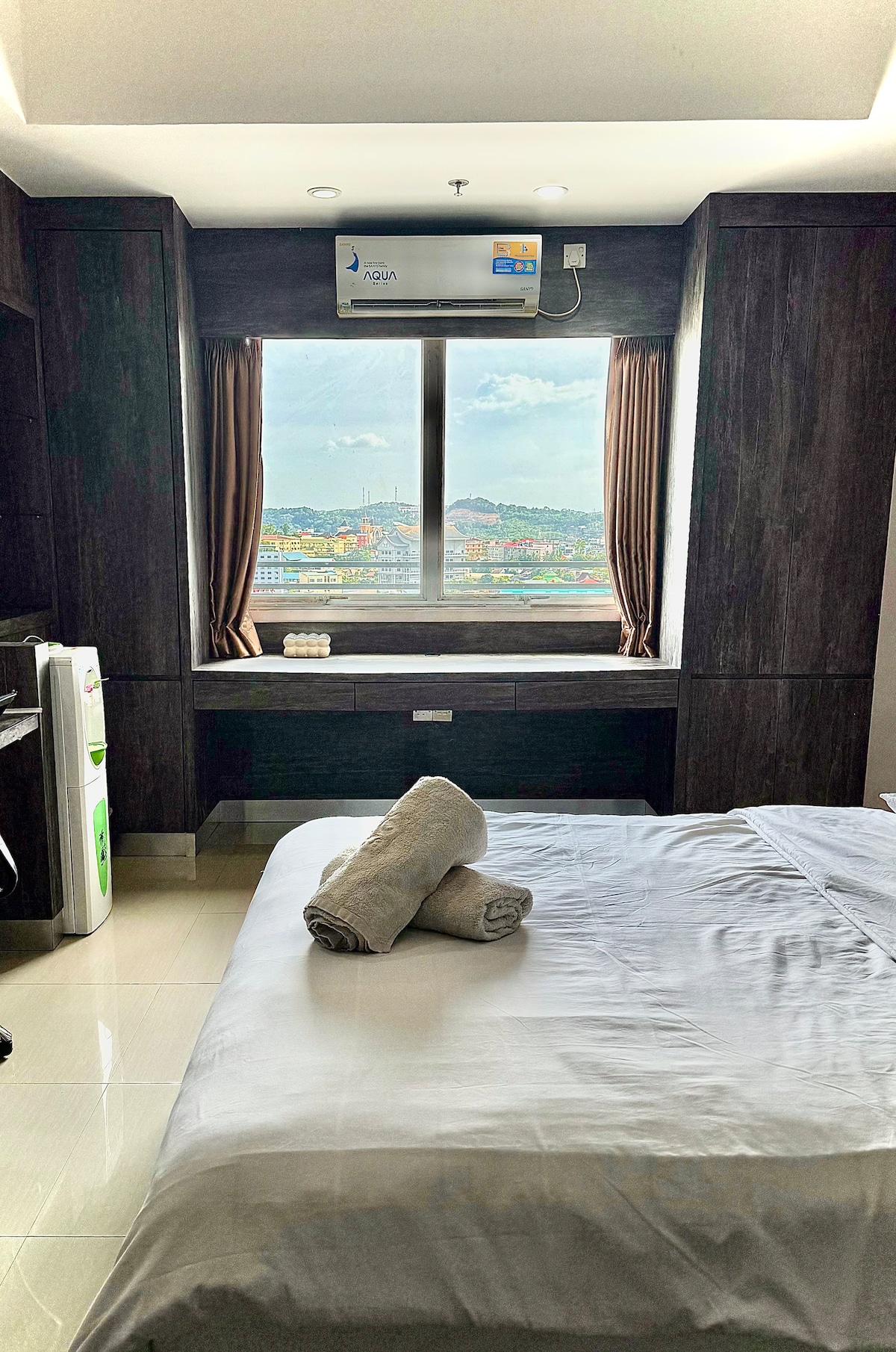 ¡Apartamento en alquiler en Citra Plaza Nagoya! - Acogedor tema de estilo japonés recién amueblado: sala de estar, balcón, cocina, 3 camas (1 queen, 2 individuales para hasta 4 personas), baño (calentador de agua). - Ubicación estratégica: a 5 minutos de Nagoya Hill Mall y Nagoya Foodcourt, a 9 minutos de Grand Batam Mall y Harbourbay Ferry Terminal - Acceso privado, piscina, parque infantil y gimnasio. - Planta alta (18) con vistas increíbles a la ciudad. - Incluye tarifa de mantenimiento, servicios públicos, wifi gratuito y estacionamiento de pago. ¡Disfruta de tu estancia y vive una experiencia única en Batam!