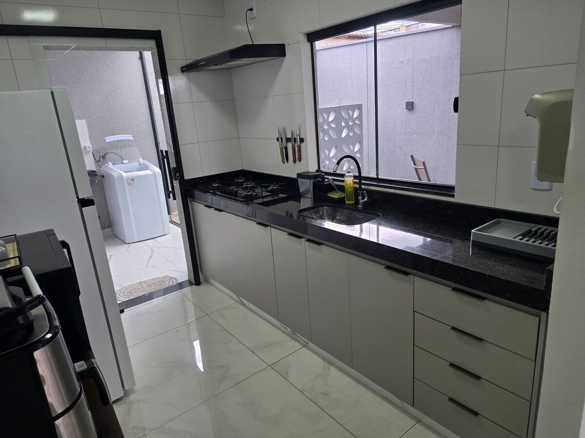 BELA CASA GYN - 5 km Autodromo Ayrton Senna - 10 km Flamboyant Shoping ,16 km Terminal Rodoviário, 8,3 km Jd Botânico, 22km Aeroporto de Goiânia, 02 parques para caminhadas, 3kM da PUC. A comodação com jardim, Wi-Fi grátis, uma cozinha compartilhada e um lounge compartilhado, uma varanda e estacionamento privativo grátis. Ar-condicionado, 2 suites, uma sala de estar, uma cozinha completa, 3 banheiros e produtos de banho de cortesia, toalhas e roupa de cama, churrasqueira.
