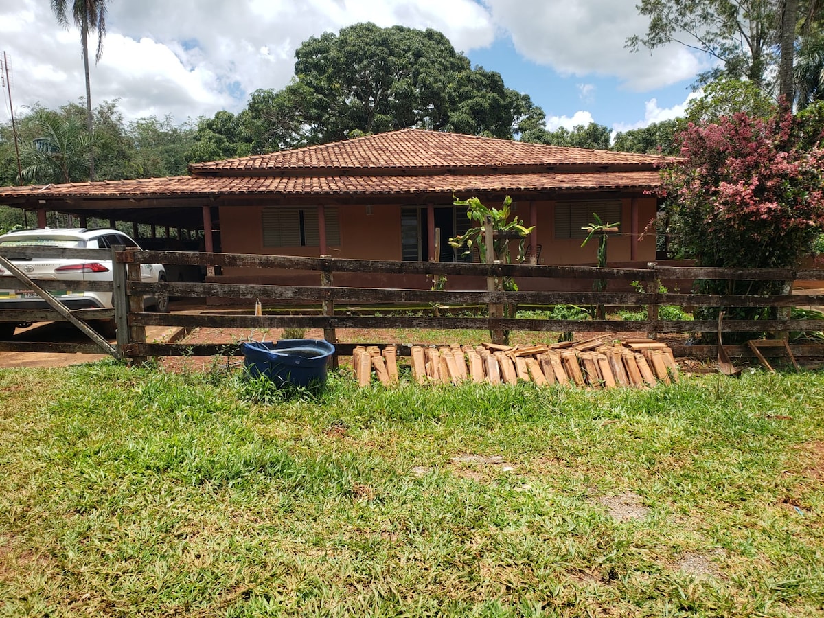 Esqueça suas preocupações neste lugar espaçoso e tranquilo. Ao lado da cidade , zona rural a 5 minutos de Goiânia localizada no senador canedo Prox a Vila Galvão , com 2 quartos grandes , colchões , 3 banheiros com chuveiro quente , piscina aquecida com ofurô e jacuzzi , 10 jogos de mesas, 40 cadeiras , área gourmet que comporta 40 pessoas , jardim, sem vizinhos vista panorâmica para Goiânia , fogão industrial e cook top freezer , ideal para eventos ATENÇÃO: PARA EVENTOS A NOITE O PREÇO MUDA