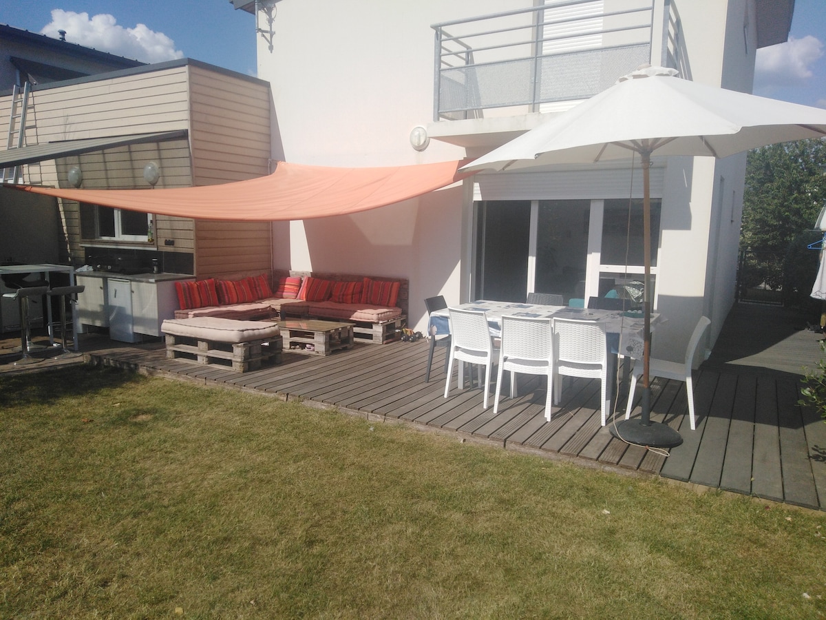 Casa reciente con elegante vista con terraza y jardín. Un garaje y una plaza de aparcamiento al aire libre están disponibles y está cerca del centro de la ciudad de Vannes. Todas las comodidades están a su disposición para 4 a 6 personas, incluidos 2 baños. Decoración moderna con un toque industrial muy contemporáneo. ¡Solo tendrá que dejar sus maletas y disfrutar del Golfo de Morbihan!