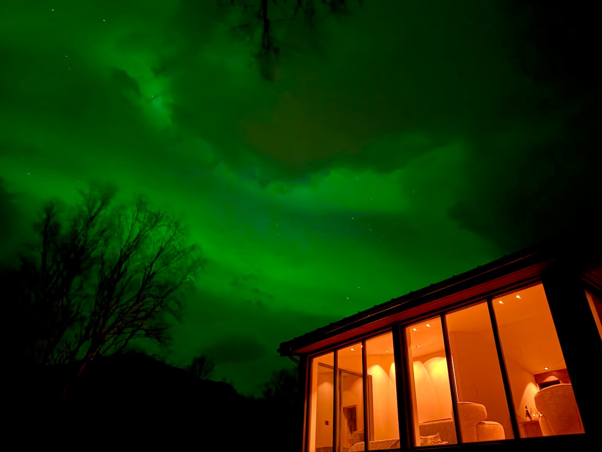 Recarga las pilas de tus pilas en este alojamiento único y tranquilo. Este alojamiento es realmente especial y te da la sensación de ser parte de los elementos naturales desde el interior. La vista es hermosa e impresionante, solo deja que la calma del desierto de Senja alivie tu mente. Nos ubicamos en la segunda isla más grande de Noruega, Senja. Aquí puedes disfrutar del paisaje costero y los fiordos justo en la puerta del Parque Nacional Ånderdalen y el fiordo Tranoybotn.