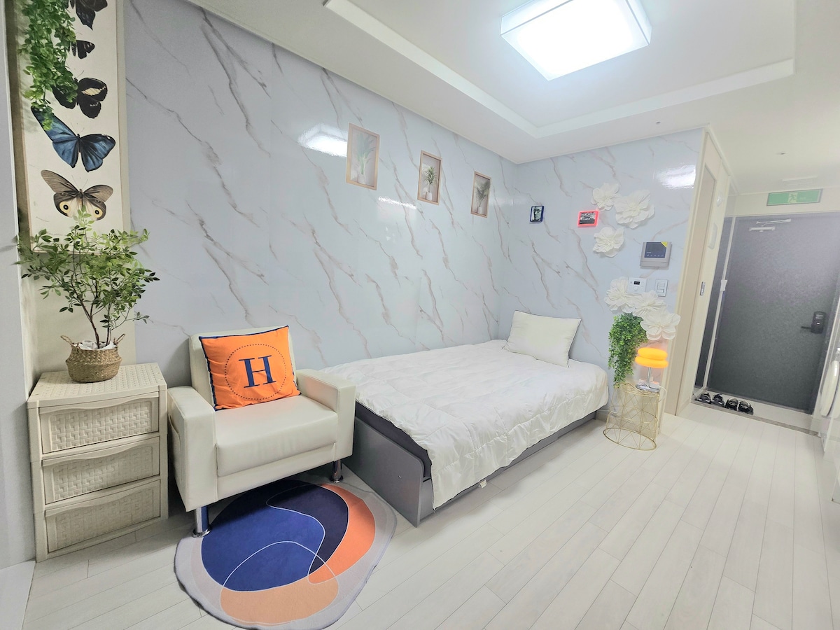 Está ❣️limpio y equipado con todas las opciones, por lo que puedes quedarte cómodamente durante períodos cortos o largos. El entorno es tranquilo y la luz del sol es buena, por lo que la casa es luminosa.También hay una terraza privada conectada a la habitación, y hay una terraza común en la azotea. Es una cama individual muy grande, por lo que puedes alojarte de forma espaciosa y cómoda. 👍 Toallas/productos para el cabello/productos para el cuerpo/desinfectante de manos/vajilla/todo está equipado. Es mi felicidad que el 🥰huésped tenga una estadía cómoda ~♡ También hay una mesa en la terraza al aire libre donde puedes relajarte, por lo que es aún mejor usarla. También hay tiendas de comestibles, mercados, mercados tradicionales, comida, bibliotecas, paradas de autobús, metro, etc. cerca.Limousine Direct Aeropuerto de👍👍 Incheon (Terminal de autobuses interurbanos de Songtan) Bájate y camina hasta el alojamiento durante 5 minutos~♡