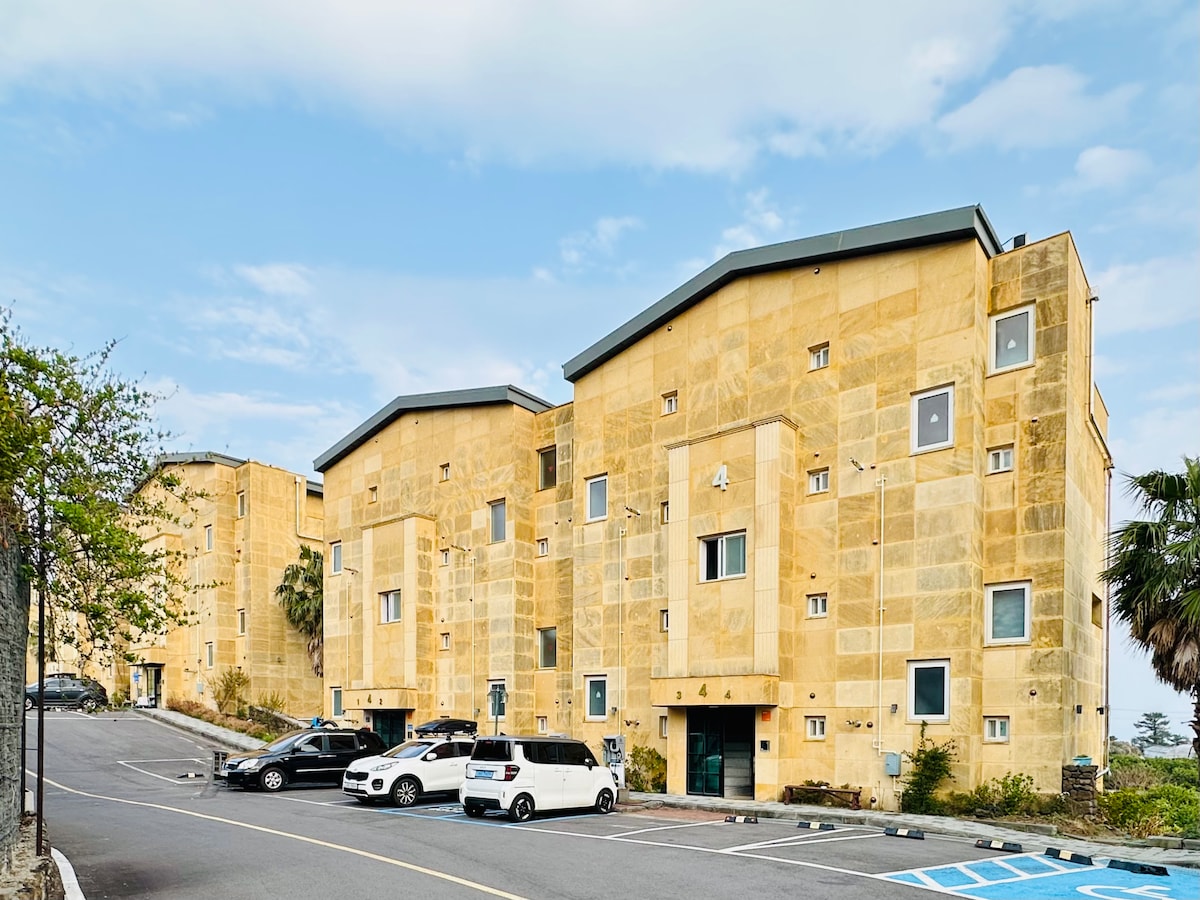 Hola. Ubicado sobre un acantilado en el centro de Seogwipo, este espacio ofrece vistas al océano y a las islas. Con 66㎡ garantiza privacidad y tiempo propio. Aunque es tipo estudio, el dormitorio, sala y cocina están claramente separados, brindando amplitud y comodidad. En la terraza podrá disfrutar del spa y de una barbacoa con vista al mar. Desayune frente al mar en la piscina infinita a diario. La piscina abre de mayo a octubre. El lounge ofrece desayuno gratuito con vistas a Beomseom.:)