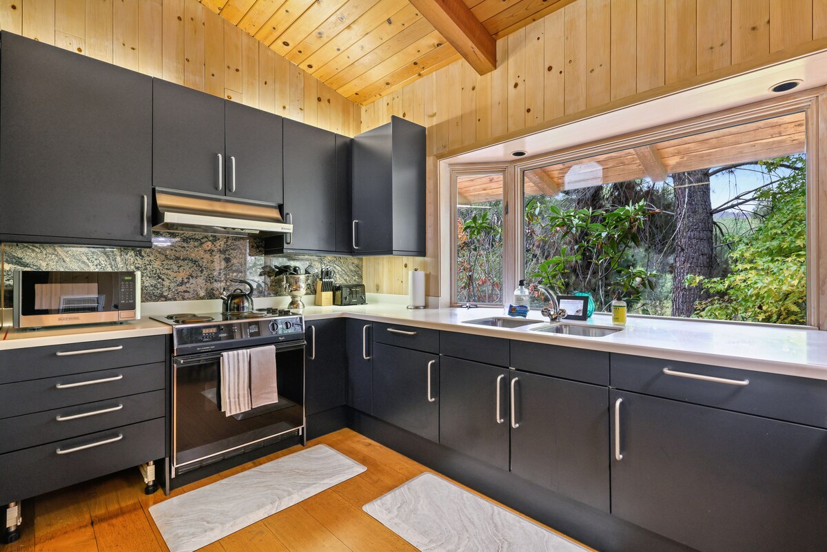 Ubicada entre rocas y árboles, esta acogedora pero moderna casa de campo hará que tu estancia sea inolvidable. Aunque la casa está en el centro de Three Rivers (incluso puedes ir caminando a la tienda de dulces y al Riverview), parece totalmente aislada, ya que se encuentra al final de una carretera privada. Relájate en el patio trasero después de pasar un día en el parque o acomódate en el sofá para ver tu programa favorito en la televisión inteligente. Ofrecemos buen wifi y un escritorio para aquellos que necesiten trabajar.