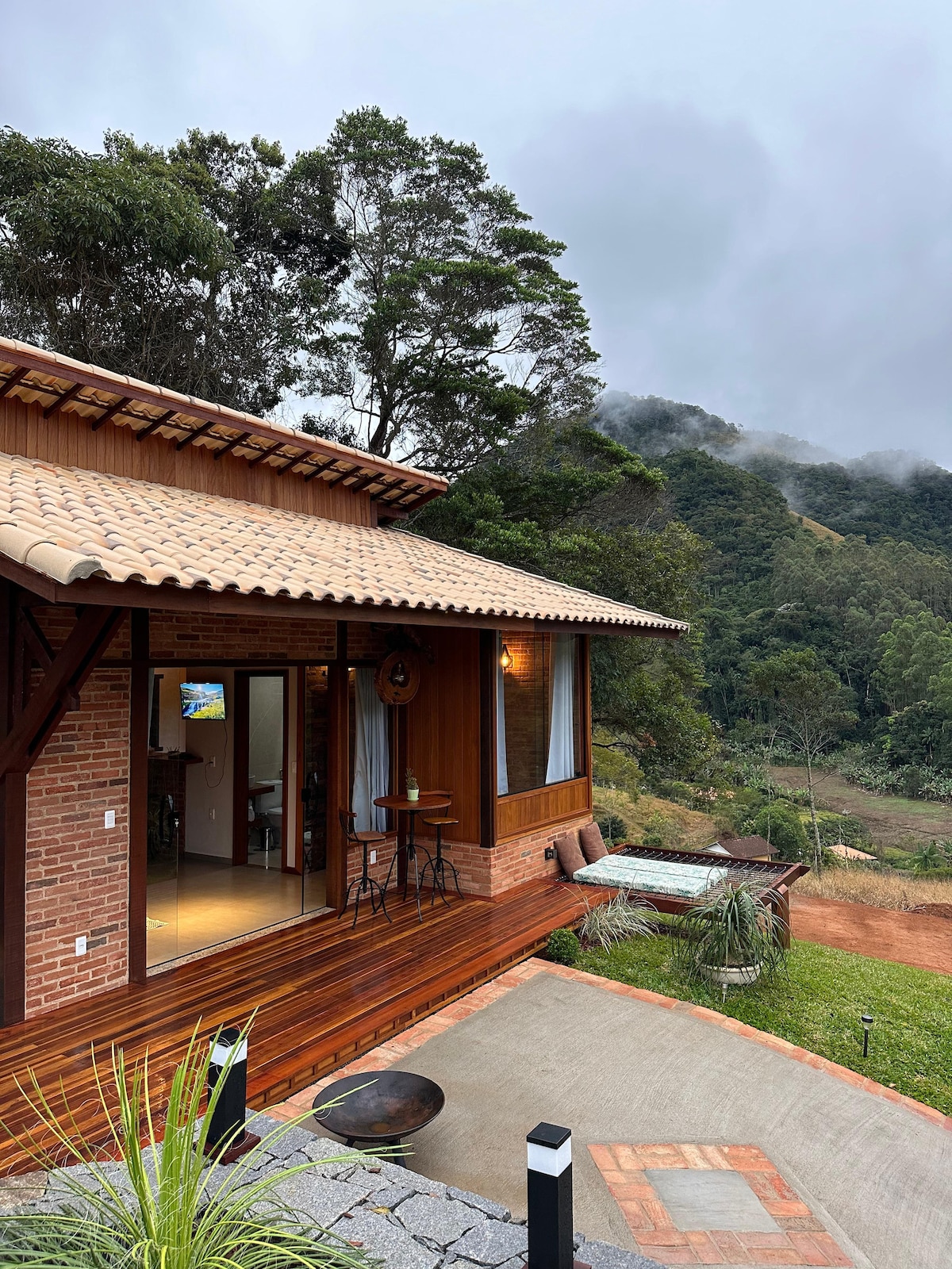 La casa tiene una vista impresionante, con total privacidad y comodidad. Cuenta con piscina, chimenea, estufa a leña, barbacoa, horno de pizza a leña y está rodeada de bosque atlántico. El lugar es un rincón ideal para aquellos a los que les gusta disfrutar de la naturaleza, mucha tranquilidad y reunirse al aire libre, con su familia o amigos que se alojen en el lugar.