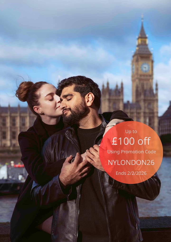 Disfruta de una sesión de fotos de 1 hora a lo largo de una ruta clásica de Londres o en 1 ubicación personalizada de tu elección. Este paquete incluye 80-100 fotos digitales.