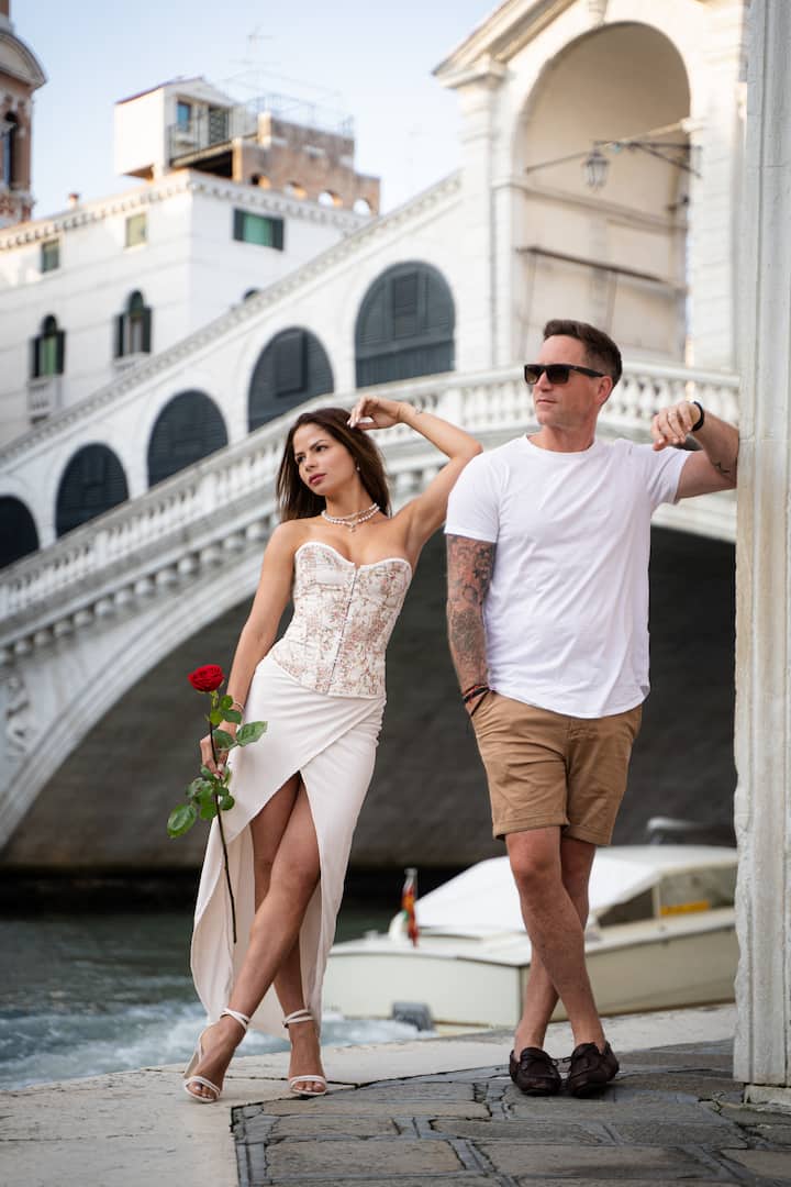 Tomaremos fotos en 2 ubicaciones. el puente de Rialto y las calles de Venecia. Recibirás un total de 70-80 fotos en formato JPEG y 10 fotos editadas.