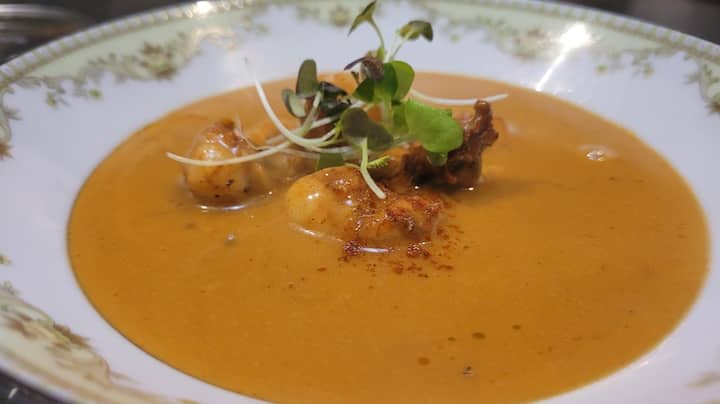 Disfruta de un menú diverso con sabores sorprendentes, que incluye una variedad de aperitivos, primeros platos y una selección de platos principales y postres.