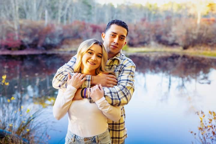 Disfruta de una sesión ampliada en el área de Boston, ideal para reuniones grandes o para pasar de las fotos de compromiso a una celebración en un restaurante.