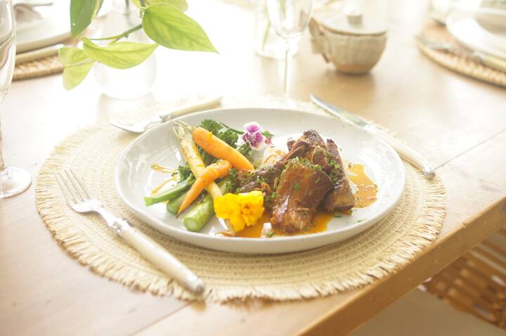 Un banquete informal y compartido diseñado para favorecer la fluidez, la conexión y la relajación. Diseñado cuidadosamente para equilibrar las hormonas femeninas y armonizar los cinco sentidos, este menú hace que tu estancia se sienta como un verdadero lugar de retiro.