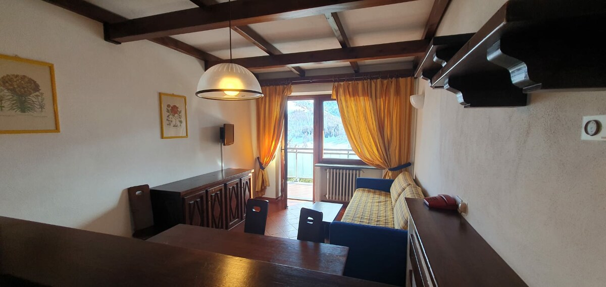 Con apool. El departamento se encuentra en la Villa Olímpica, a 50 metros de las pistas de esquí. Ideal para esquiadores y vida de montaña, golf y caminar. Puede alojar hasta 4 personas (un dormitorio doble y un sofá cama). El apartamento tiene una cocina pequeña equipada (cafetera Lavazza para cápsulas A MI manera NO SE proporciona) cama de dormitorio con TV, un baño con ducha y secador de pelo, sala de estar con TV, sofá cama para 2 asientos, mesa de comedor. Balcón pintoresco con tumbonas.
