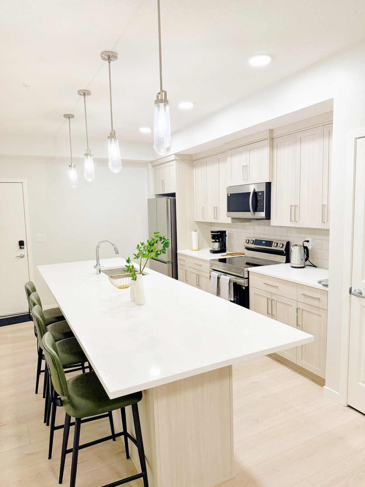 Disfruta de una estancia de lujo en este moderno e impecable apartamento de 2 dormitorios en Calgary. Capacidad para 5 personas con un cómodo sofá cama. Incluye aparcamiento subterráneo gratuito, cocina totalmente equipada, wifi de alta velocidad, TV inteligente y lavandería en la suite. Ubicado a 1,5 de Banff, es la base perfecta para aventuras en la ciudad y escapadas a la montaña. Ideal para familias, parejas o viajeros de negocios que buscan comodidad y estilo. Entrada sin llave para facilitar la llegada.
