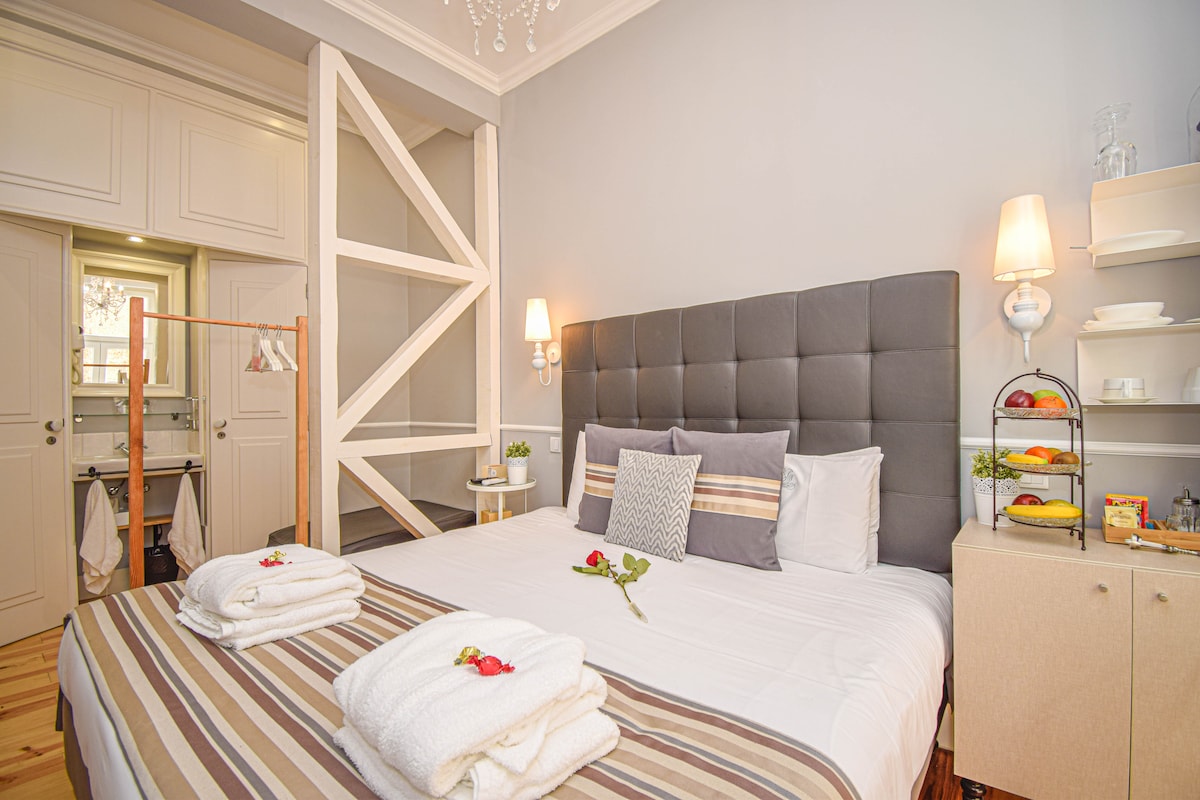 Elegante, confortável e central, composto por quarto de dormir, salinha e casa de banho, área total de 20m2, num edifício de 1900, no centro da cidade, à porta do metro do Saldanha. Wi-fi premium, mobiliário e têxteis de qualidade superior. Perfeito para visitar a cidade ou viajar em trabalho.