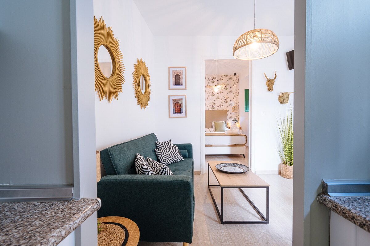 Apartamento de un dormitorio ideal para parejas y un bebe ya que disponemos de una cuna de viaje. Tiene todo lo necesario para pasar unos días geniales en Sevilla. Baño con bañera y cocina independiente con todo lo necesario si quereis cocinar. Todas las estancias tienen luz y ventilación natural. El apartamento cuenta con calefacción y aire acondicionado.