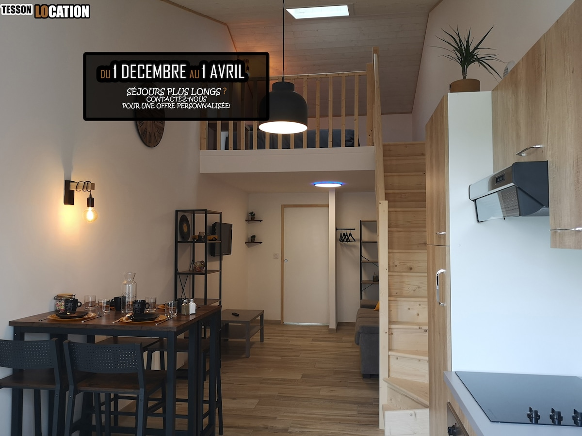 Descuento del 30 % la semana de (diciembre/abril) Alojamiento nuevo y luminoso de 32 m2 que consta de una sala de estar con cocina totalmente equipada, placa de inducción, nevera, microondas, pantalla plana y un sofá cama que sirve como segunda cama. También tiene a su disposición una cafetera eléctrica, un hervidor de agua y una tostadora, paños de cocina. Una habitación con armario y cama de 140/190. Un cuarto de baño con inodoro, mueble bajo el lavabo, ducha con chorro de hidromasaje. Limpieza incluida.