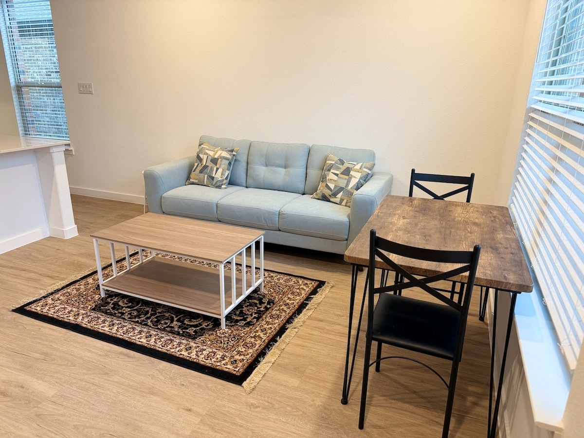Kick back and relax in this brand new calm, stylish studio. Located off of Interstate 35, this is a prime location for taking a quick trip down to Dallas or to the UNT college campus. Our guests will enjoy a private unit with a walk in shower, full size appliances, in-unit washer and dryer, and complete blackout shades for those that work nights or like to sleep during the day. This space would be ideal for parents visiting their children at UNT or traveling healthcare professionals.