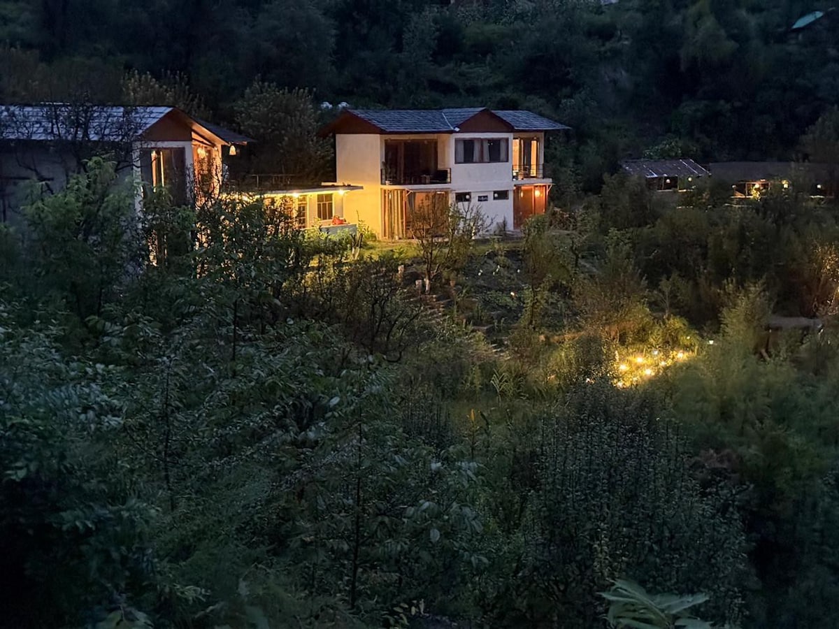 Relájate en este espacio tranquilo y elegante. * Wifi * Power Backup * Servicio de comida y cuidador * Jardín privado * Arquitectura de madera de pino * Estacionamiento seguro * Consejos locales. * Bonfire Ten en cuenta que hay una caminata de 500 metros desde el estacionamiento hasta la propiedad. Recogeremos tu equipaje. - El precio incluye solo la estadía. Desayuno, comidas, calentadores de habitaciones, fogata y todos los demás servicios están excluidos.