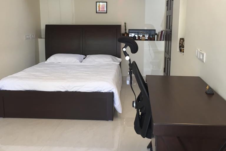 Este Airbnb se encuentra en una de las zonas más deseables de Bangalore, Lavelle Road. Este espacioso y elegante estudio tiene 450 pies cuadrados y está en el segundo piso. El edificio tiene ascensor. Los autos se pueden estacionar fácilmente en el sótano. Los huéspedes pueden acceder a los espacios comunes y a la terraza del edificio, que tiene una gran vista del horizonte de Bangalore. Los huéspedes también pueden pedir comestibles, comida, etc. en Zepto, Swiggy, Instamart y se entregarán directamente en la puerta.