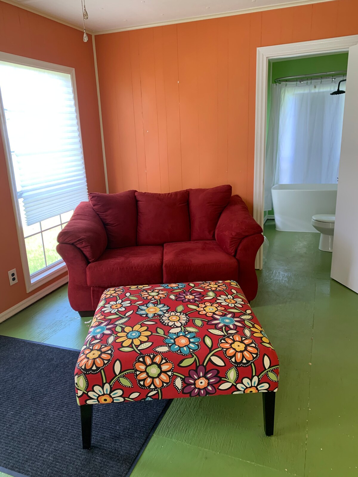 Tenemos un apartamento de huéspedes con temática de granja con su propia entrada privada y terraza privada con vistas a un lago privado a través de los árboles en los bosques de pinos del este de Texas. La habitación cuenta con electrodomésticos nuevos y una cafetera. Hay una cama tamaño king muy cómoda y un sofá cama. Hay mucho espacio en el armario. La cocina está totalmente equipada con platos y utensilios. También se puede acceder al cuarto de lavado. Este alojamiento está unido a mi casa, ¡pero somos vecinos tranquilos!