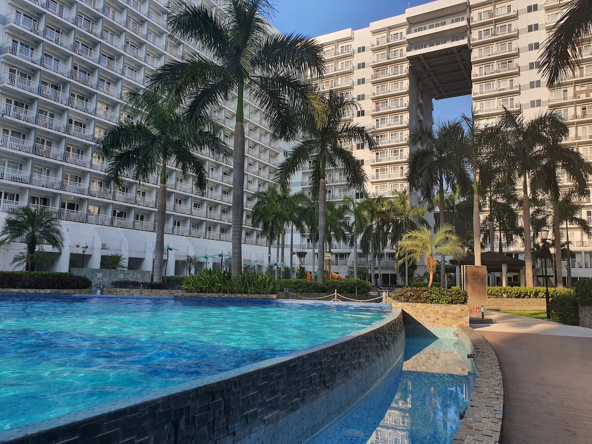 La suite 1019 de la torre D es un apartamento de 1 dormitorio totalmente amueblado ubicado en el décimo piso. ¡Alójate en este acogedor apartamento nuevo! ¡Perfecto para unas vacaciones en casa! Te encantará mi alojamiento por la cómoda cama y la configuración completa. Mi casa es ideal para parejas, aventureros solitarios, viajeros de negocios y familias con hijos. El lugar es un complejo residencial tipo resort que se encuentra en el corazón de Entertainment City y del centro comercial Mall of Asia. Vuelve a casa con servicios inspirados en un centro vacacional y celebra eventos memorables con tus amigos y familiares.