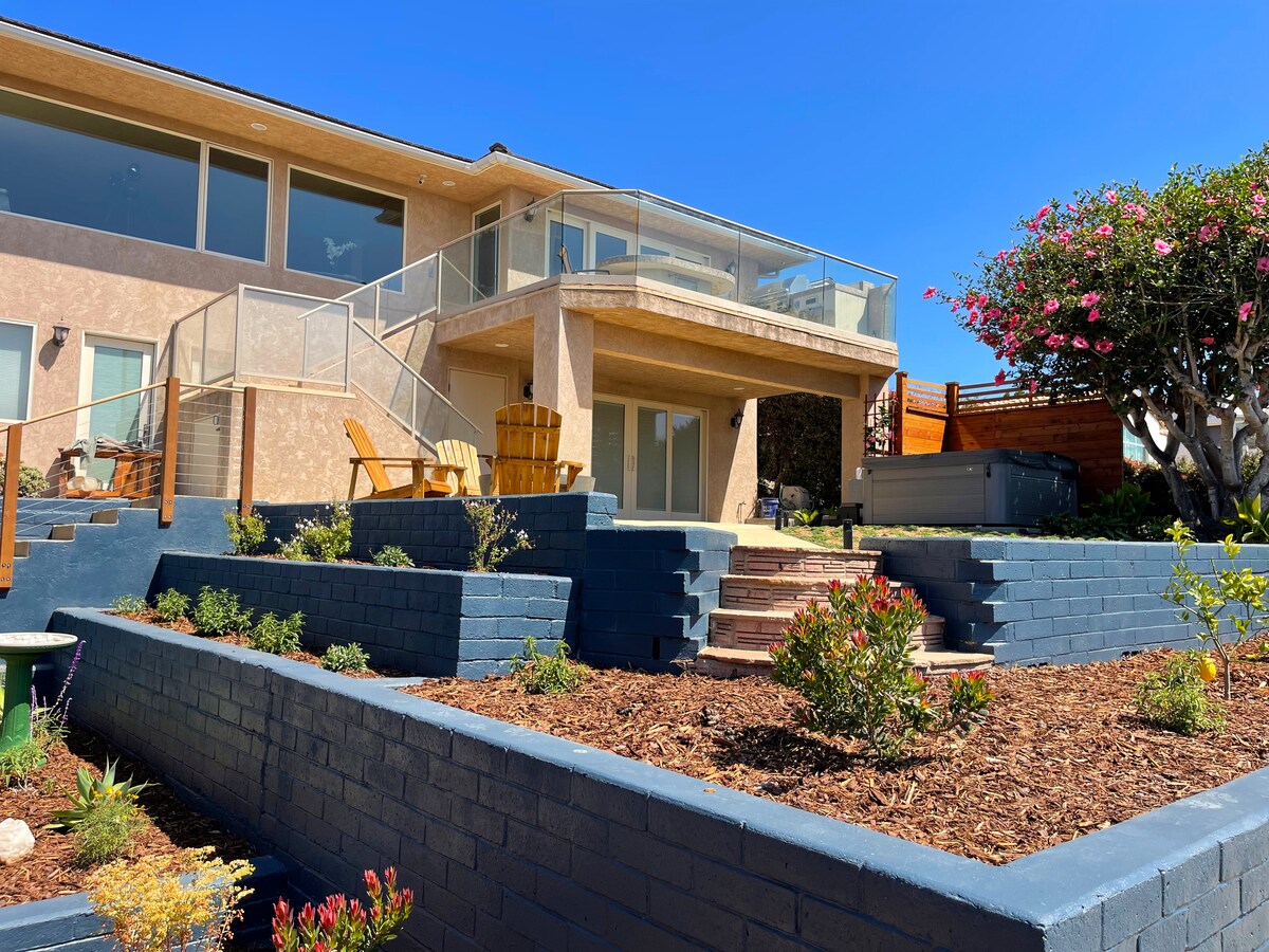 *ECHA UN VISTAZO A NUESTRO OTRO AIRBNB* Sube 16 escalones por una escalera curva de inspiración griega con paredes altas de 2 pisos hasta tu casa de campo escondida construida en la villa en la ladera de la colina de Alta Colina. Con vistas espectaculares, sube al balcón para ver cómo despegan los aviones y los barcos navegan alrededor del puerto. Termina la noche frente a la chimenea de tu patio trasero aislado o sube los escalones de tu escalera de caracol hasta el jacuzzi de la azotea. Diseño y detalles de inspiración europea, ¡será difícil creer que todavía estés en San Diego!