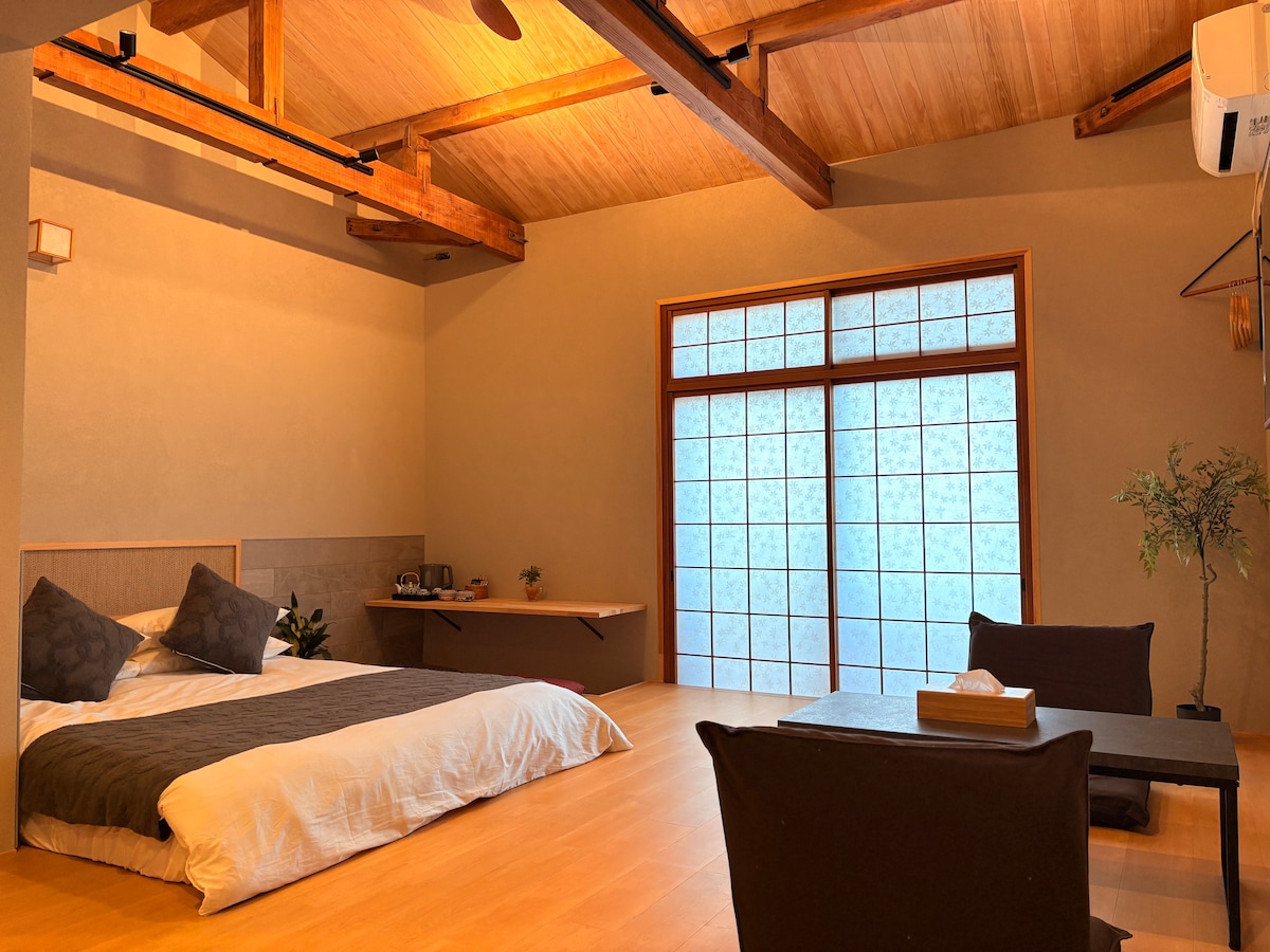 Esta es una posada privada que ha sido remodelada de una casa antigua con bricolaje. Ubicado en el borde de un pueblo frondoso, puedes disfrutar de experiencias extraordinarias como los interiores especiales del propietario, los baños de barril de vino y los sofás de larga duración. En el mismo sitio se encuentra una casa con techo de paja donde vive el propietario. Puedes relajarte en un espacio nostálgico y moderno que utiliza una escalera de caja antigua. Esta propiedad se puede utilizar para familias, grupos (máximo 6 personas). Por supuesto, 1 persona o 2 personas también son bienvenidas.