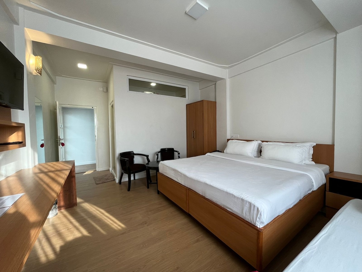 Perched on the 4th floor of a charming house, this private rooftop studio offers a peaceful retreat with stunning panoramic views of Shillong’s rolling hills. Perfect for solo travelers, couples, or small families, the space ensures complete privacy and a cozy atmosphere to unwind. A bright, airy studio with king size bed, well- equipped kitchenette and a modern bathroom with 24/7 hot water. A private balcony to enjoy your morning coffee or evening tea while soaking in the misty landscape.