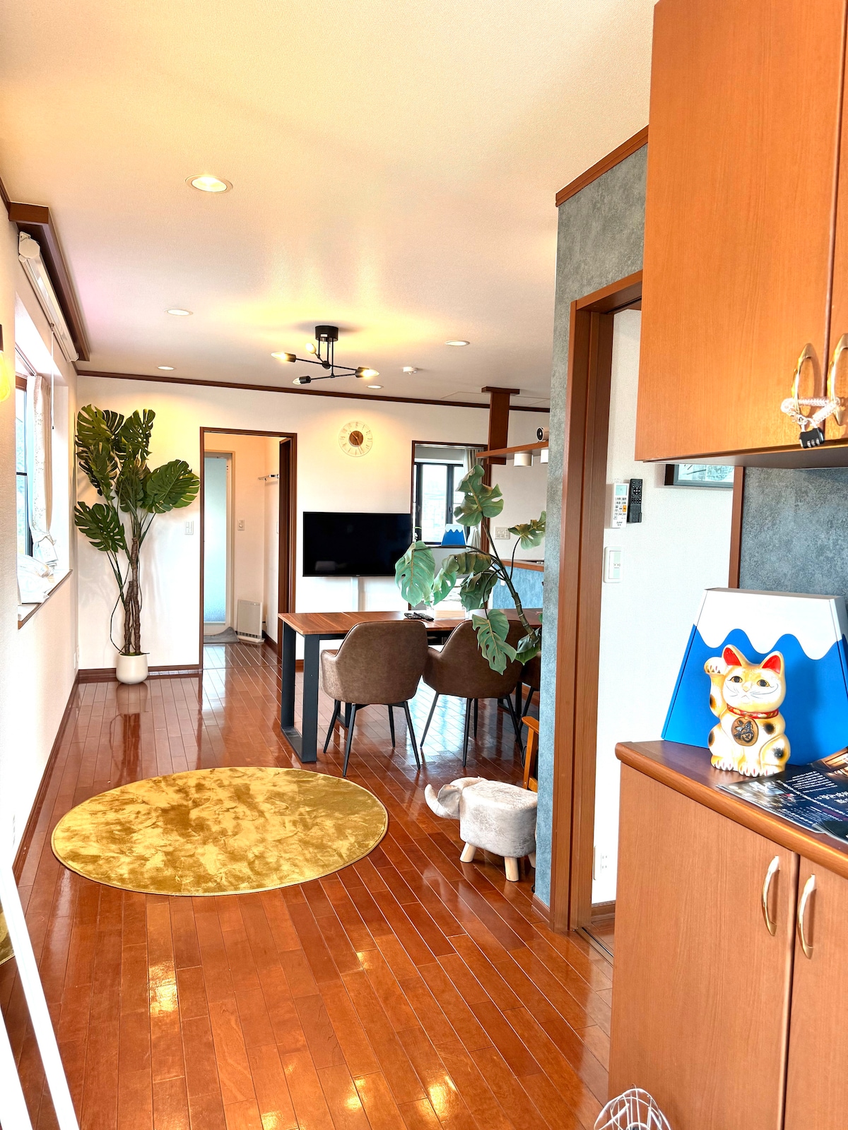 La calidez de la madera se puede sentir en Atagawa Moon Lodge, que hace un uso abundante de madera de cedro maciza. Atagawa es una meca de aguas termales con numerosas fuentes. A 15 minutos en coche de la posada hay una playa donde podrás disfrutar de actividades de playa. ¡Ubicado en el centro de Higashi Izu, es la base perfecta para hacer turismo en Izu Kogen, Ito y Shimoda! En las noches con luna llena, es posible que puedas ver el fantástico camino de la luna creado por la luz de la luna que ilumina el océano desde tu habitación.