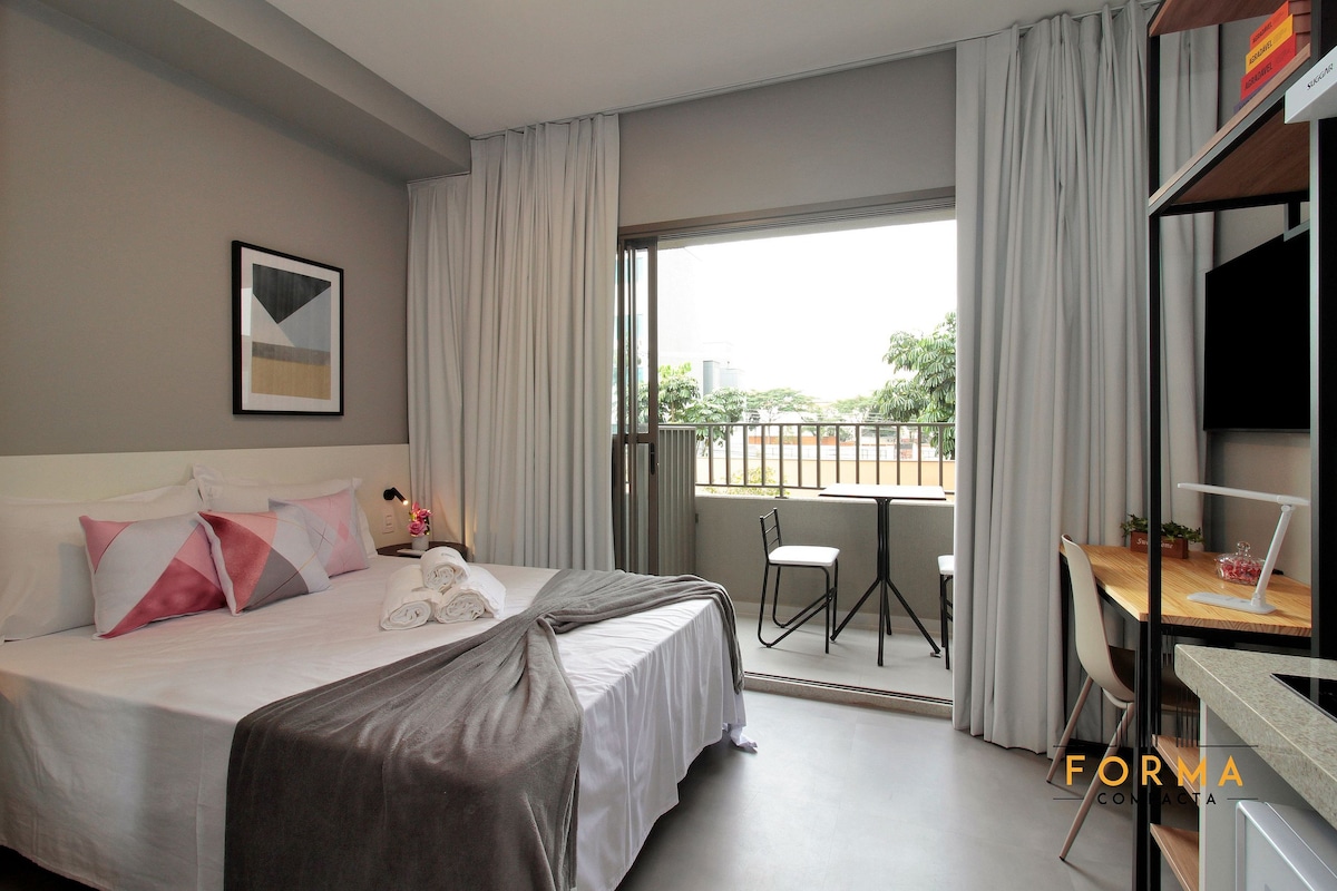 Estudio completo, súper cómodo y equipado, a 10 pasos del metro Belém (línea roja) al lado de Mooca y Brás. En los alrededores encontrarás de todo, desde hospitales (CEMA) hasta supermercados (frente al Sams Club), además de comercios locales repletos de opciones. El condominio es nuevo, recién entregado por la constructora, por lo que todo es MUY nuevo y bien cuidado. En el estudio, los electrodomésticos son todos nuevos, así como la decoración y los muebles. Lugar perfecto para trabajar y también para descansar
