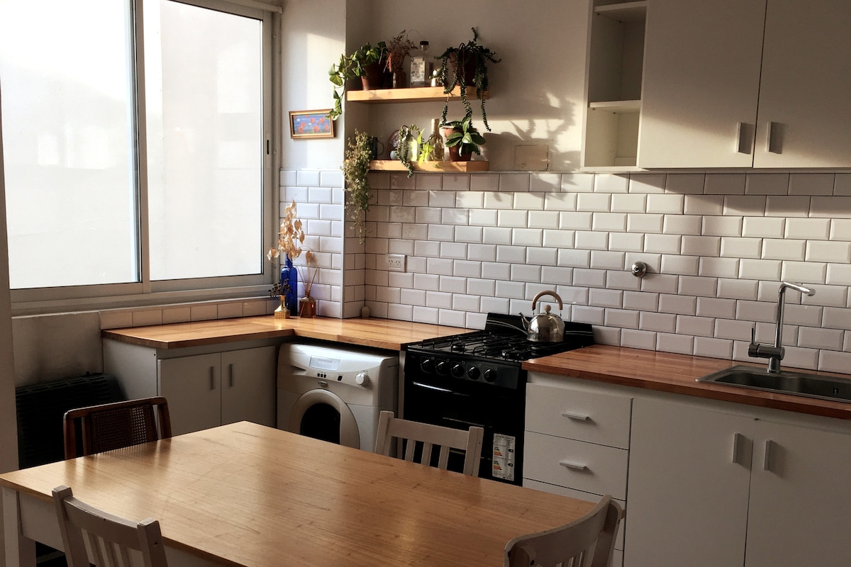 Es un departamento pequeño,de 2 amb,con vista al contrafrente. Con equipamiento sencillo y básico como si fuera el hogar de un estudiante universitario. IDEAL PARA PAREJAS, GRUPO FAMILIAR, PEQUEÑO: 2 adultos y 1 niño, O VIAJERO SOLITARIO. El baño y la cocina están en su estado original. La heladera y utensilios tienen sus buenos años, pero funcionan correctamente. Posee termo eléctrico, AACC frío/calor, cocina y horno a gas Tiene Wifi TV led con Google tv Tiene heladera. No posee freezer