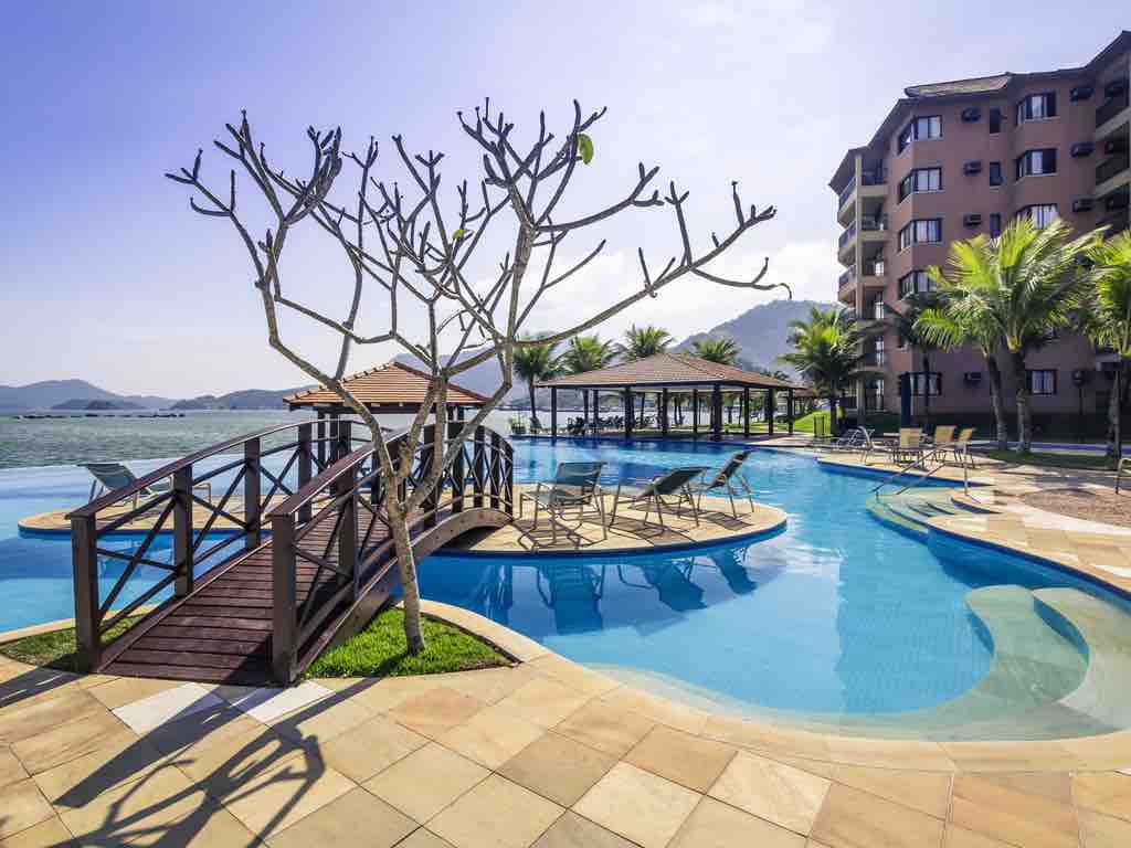 Increíble lugar con piscina infinita frente al mar de Angra... super bien ubicado... al lado del centro comercial piratas... con varias opciones de bares y restaurantes... con salida diaria en lancha para recorrer las islas... cerca del aeropuerto y la estación de autobuses... con bar y restaurante en la piscina... espacio para niños... piscina climatizada... servicio de masajes... sauna... gimnasio y spa