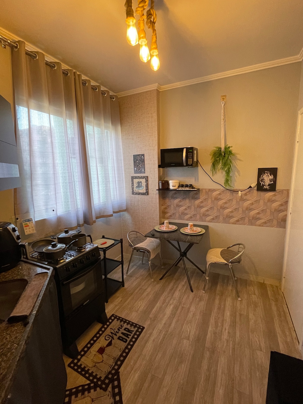 Tranquilo y bien ubicado, con fácil salida a BH, Valadares o Caratinga, este pequeño espacio cuenta con todos los elementos necesarios para una estancia cómoda, con capacidad para 2 huéspedes. La cocina está equipada con elementos básicos como cafetera, ollas, vasos, termo, sandwichera, Airfryer. La habitación tiene una cama doble con muelles, TV 42, armarios, plancha, aire acondicionado split de 12 000 BTU y ventilador de techo. Garaje para coches de paseo.