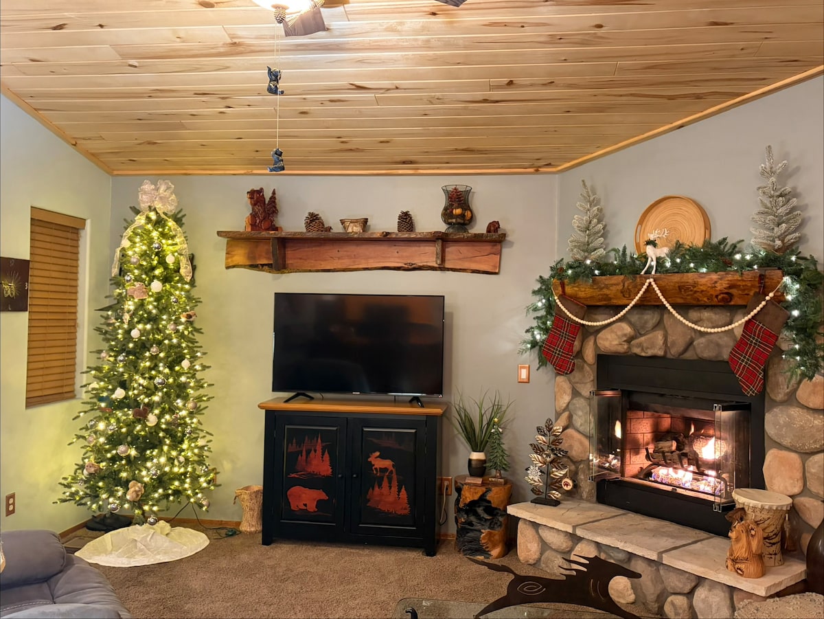 Este alquiler está justo entre Showlow y Pinetop. La cabaña de madera es perfecta para una persona, una pareja, así como un grupo pequeño o una familia. Se admiten mascotas. El loft de arriba es un éxito entre los niños y los durmientes adicionales. Los huéspedes pueden acceder a la casa club y sus inmensidades. Las dos zonas de estar en el interior, así como la chimenea al aire libre, permiten diversas reuniones. La comunidad es tranquila, amable y muy arbolada. Televisores inteligentes y wifi Starlink, y chimenea. Aire acondicionado y calefacción central.
