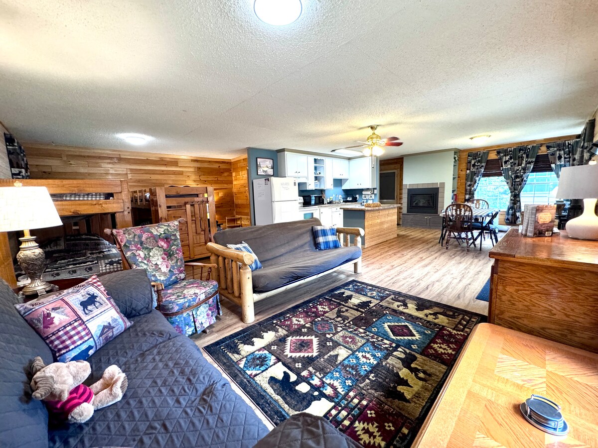 Bienvenido a nuestro Effie Oasis, una acogedora cabaña recién remodelada enclavada en 40 hermosos acres de bosque de álamos, abetos y píceas. Desconéctate de la tecnología y disfruta de nuestros 2 kilómetros de senderos, acurrúcate con un libro en los muebles de gran tamaño o juega con la familia en la mesa de la cocina. ¡Termina la noche con una hoguera y algunos filetes a la parrilla! A solo unos kilómetros de las rutas estatales de motos de nieve. Los perros que se porten bien son bienvenidos en casa, pero no en los muebles ni en las camas. Hay una tarifa de mascotas de 50 $.