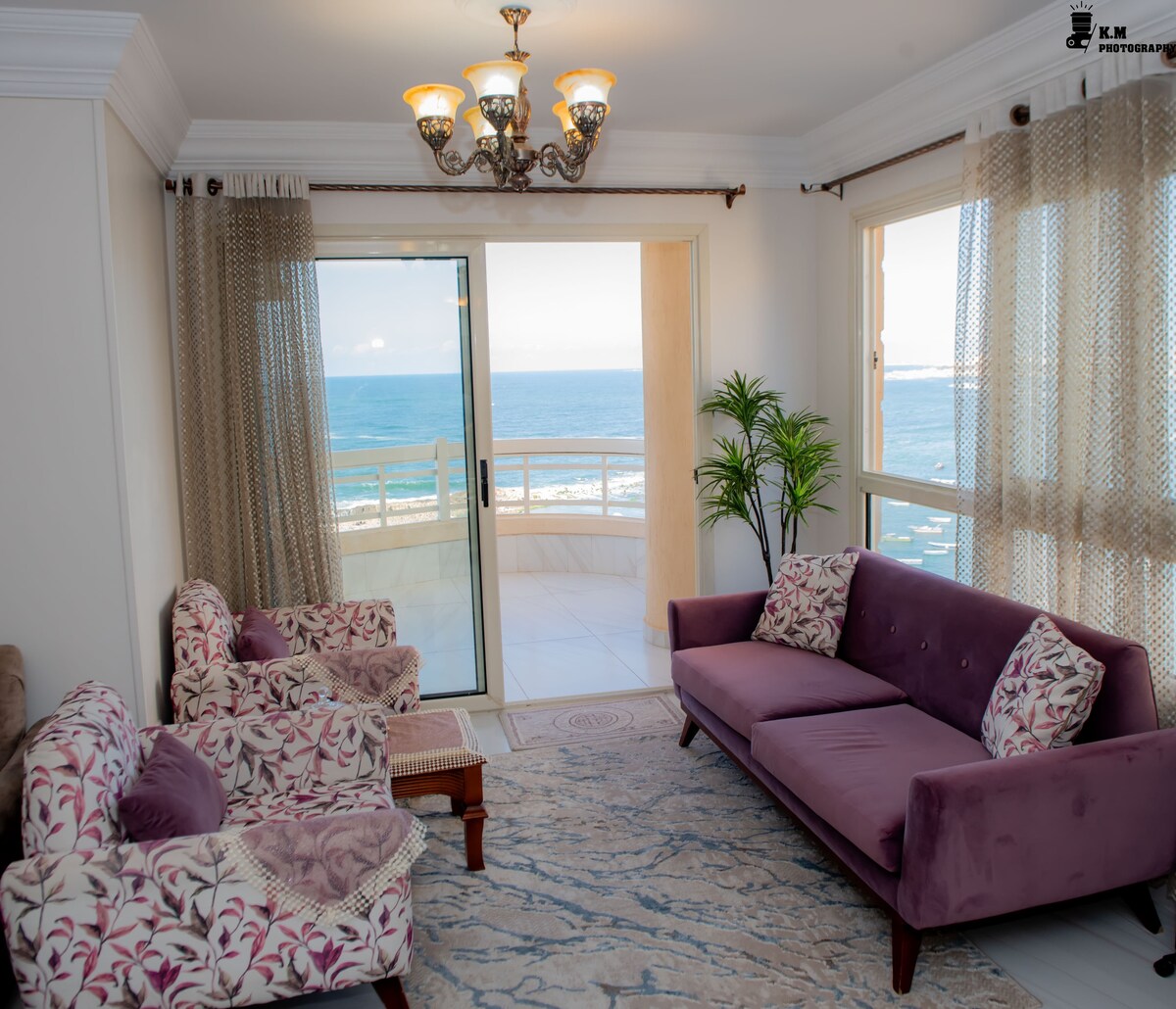 ✨ Impresionante apartamento con vistas al mar en Alejandría - 12.º piso ✨ Despiértate con impresionantes vistas panorámicas del Mediterráneo desde este apartamento de 3 dormitorios completamente amueblado en el corazón de Alejandría. Ubicada en la planta 12, ofrece brisas marinas frescas, luz natural y la máxima comodidad. 🏠 Características: • 3 dormitorios amplios. • Aire acondicionado completo en todas las habitaciones • Wifi de alta velocidad. • Totalmente amueblado con comodidades modernas Ubicación 📍 perfecta: Sedi Beshr cerca de Al Montaza, a 2 minutos del centro de la ciudad