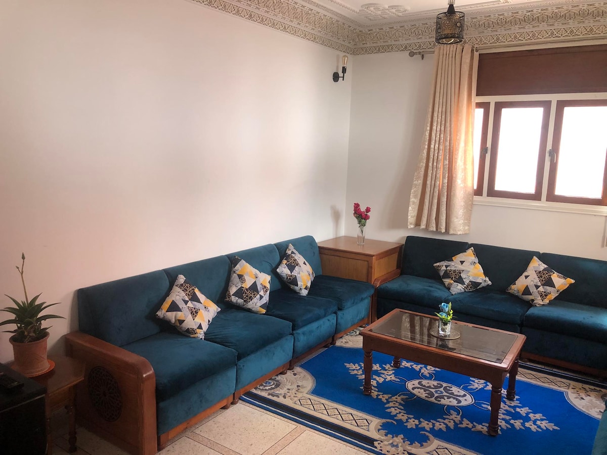 Votre deuxième petit chez vous, vous offre un séjour de détente pour tout le monde Spacieux, calme avant tout, très bien équipé et proche de toutes commodités. A deux pas de la corniche et à mi-chemin entre SIDI BOUZID et LA PLAGE d'ELJADIDA, idéale pour profiter de l’océan, à environ 2 mn à pied, d'un parc dans la même rue, des cafés, restaurants et un parc d'attraction..... Et avec une terrasse spacieuse pour profiter du climat accablant de la ville de MAZAGAN en toute sérénité et intimité.