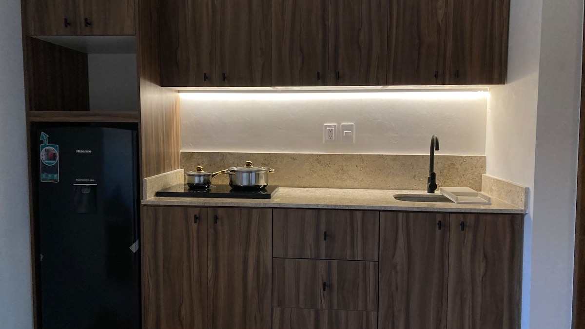 Bienvenidos a Casa Liberata. Descubre una joya escondida en Campeche, a solo unos pasos del malecón y de plaza galerías. Esta casa combina lo mejor de la arquitectura colonial con un diseño minimalista y detalles únicos. Relájate en una sala iluminada naturalmente, con techos altos, piso de pasta original y mobiliario cálido y funcional. La cocina está equipada para lo esencial, ideal para desayunos tranquilos o una copa al atardecer.