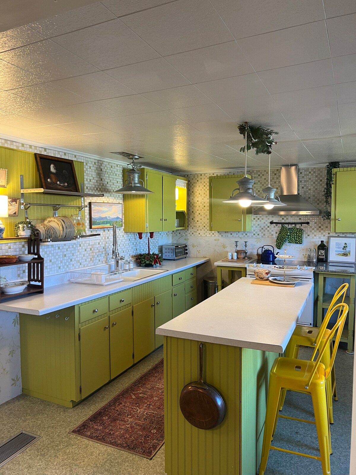 ¡Alójate en la exclusiva Art House en el distrito universitario de WNMU! A poca distancia en coche o a 15 minutos a pie del centro de Silver City, esta casa está completamente remodelada con una cocina de casa de campo actualizada y cómodas salas de estar. Dos hermosos dormitorios bien equipados son perfectos para parejas que viajan juntas o familias. Se puede acomodar una quinta persona en el sofá extragrande.