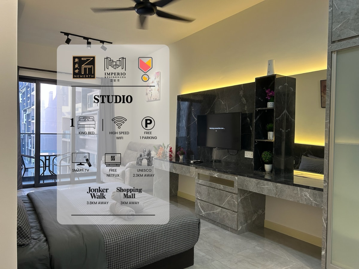 Please read carefully before booking =) This is 1 bedroom apartment located at the heart of Malacca city! ✤ FREE high speed Wifi ✤ Smart TV (NETFLIX+Youtube) It is located at the HIGH floor overseeing city. **Please do expect some road noises as it facing the city. It is located just across the street from shopping malls, eateries and entertainment places. Walk to popular tourism spots like Jonker street , A'Famosa Fort, St Paul's Hill & Church, Stadthuys and Jonker Street in 10-15minutes.