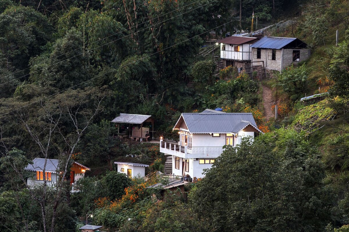 A 36 km más allá de Darjeeling, una estancia tranquila en medio de una ubicación tranquila. Trouvaille Farm es una estadía en una granja dirigida por amantes de la naturaleza apasionados. La granja es un lugar ideal para regocijarse, meditar o simplemente sentarse y absorber la magnificencia de la naturaleza. La auténtica comida y la cálida hospitalidad te harán sentir como en casa todo el tiempo. Una cálida y pintoresca casa de familia donde los huéspedes pueden disfrutar al máximo de la naturaleza. Una contribución en actividades agrícolas como cocinar o ordeñar una vaca es siempre apreciada y bienvenida.