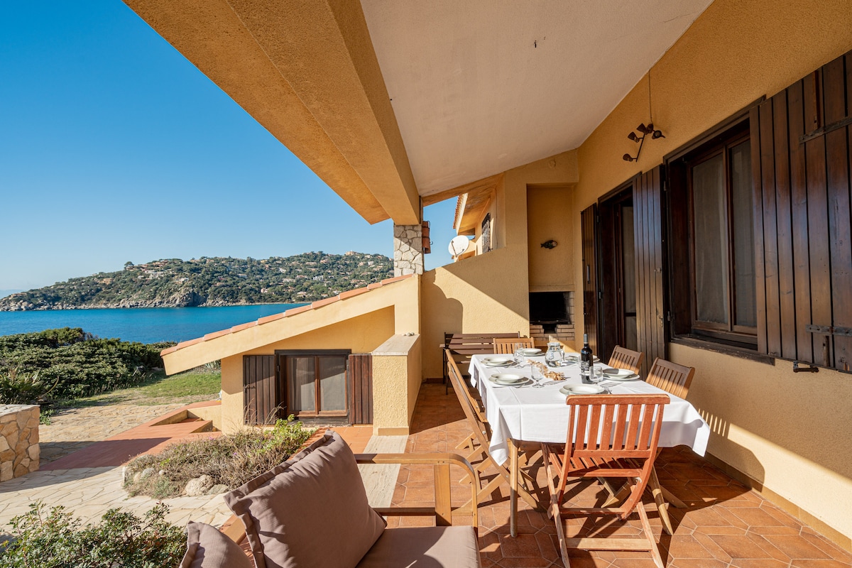 Villetta situata nel condominio di Is Traias, ad 1,5km dal centro citta, con accesso privato alla via e 2 parcheggi riservati. A meno di 5 minuti a piedi dalla spiaggia di Is Traias, raggiungibile attraverso un sentiero. La splendida vista su Punta Molentis e sull'isola di Serpentara la rende un posto unico in cui passare le vacanze. La casa è su due piani, ha un piccolo giardino sul retro con zona lavanderia e doccia e un giardino frontale a picco sul mare. Adatto a famiglie con bambini.