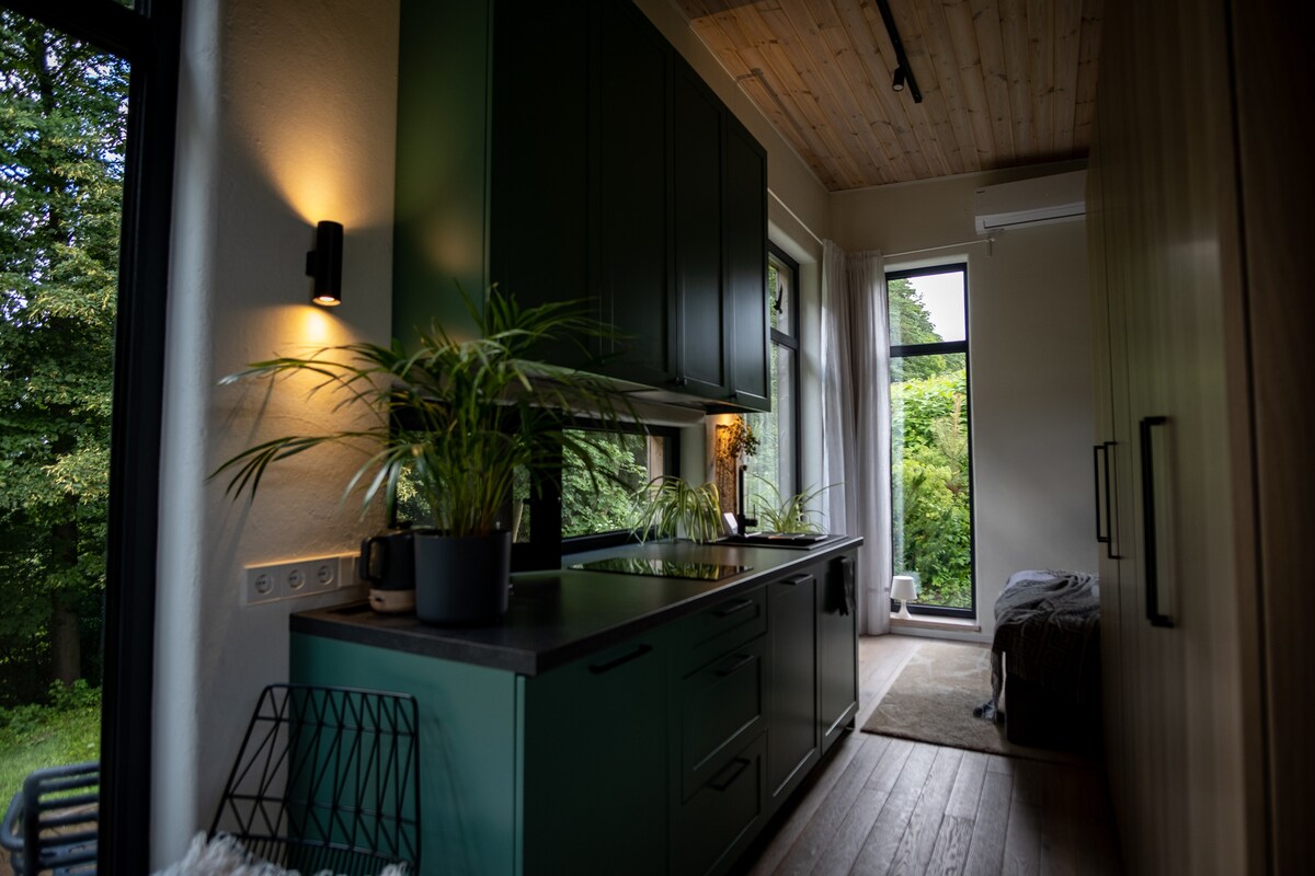 The Tiny Hemp House is located in a residential area by the Nemunas river and a forest. It is 2 km walk away from Birštonas centre. House was built by its owners themselves. They chose ecological materials - hempcrete for the walls, clay as a plaster and wood for the floors and ceiling. You can relax in the hot tub under the stars (the hot tub is an additional fee, reserve 12 h before arrival). The service is not provided when the feels-like temperature drops below –15 °C.