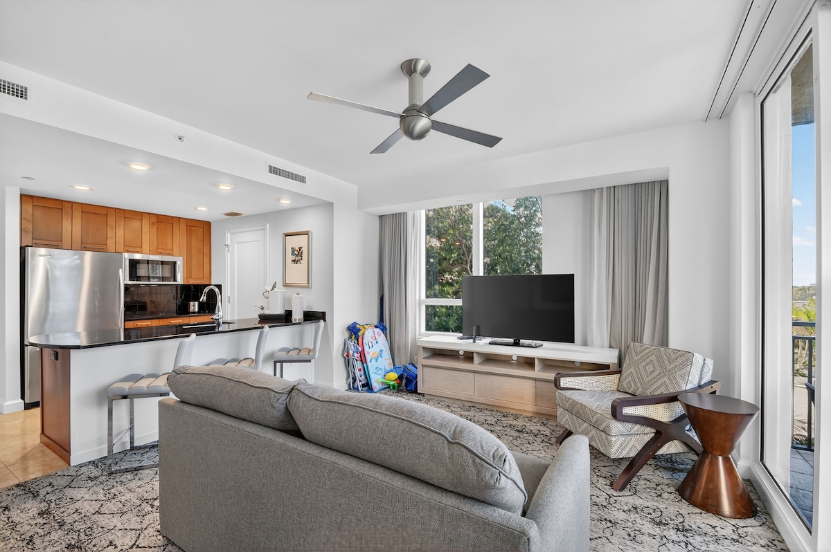 Este departamento de un dormitorio y un baño, bellamente remodelado, ofrece un diseño luminoso de concepto abierto con una cocina completa y una amplia sala de estar. Amueblado cuidadosamente pensando en tu comodidad, el espacio se siente cálido y acogedor, con vegetación exuberante y detalles elegantes en todo. El dormitorio cuenta con una cama tamaño king y amplios armarios para guardar cosas. El moderno baño cuenta con una impresionante ducha a ras de suelo personalizada. A solo dos cuadras del agua, esta es la combinación perfecta de comodidad, estilo y ubicación.