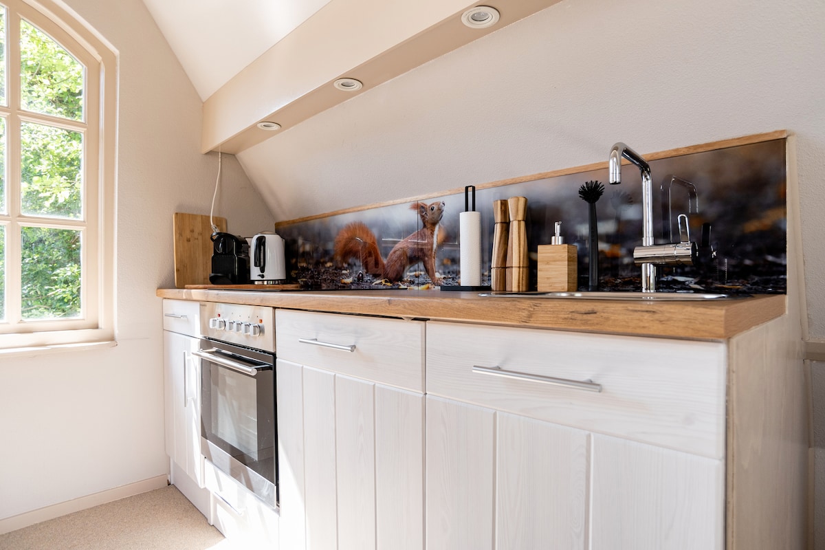Unique accommodation in the garden of an old church. The Tiny house is small in size but large in living space! Relax on the terrace or in the forest garden. Dream away in the hot tub (optional €45 first day/€25 next days, will be stoked for you) under the stars and enjoy the silence. Wake up with sunrise and a view over the meadows. (Breakfast optional €15,- pp) Your booking is also a contribution to the renovation & conversion of this beautiful monument. Thank you!